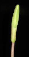 I have absolutely no idea where I got this. I may have purchased it at the IAS Fall Show & Sale a couple years ago. Alternatively it was a gift. I just know that I saw a plant sprouting in a pot that had been dry all winter. At the time, I hadn't even known that the pot had a tuber in it. After watering, I recognized it as an Amorphophallus. Once the bloom matured, it was identified by Wilbert Hetterscheid.